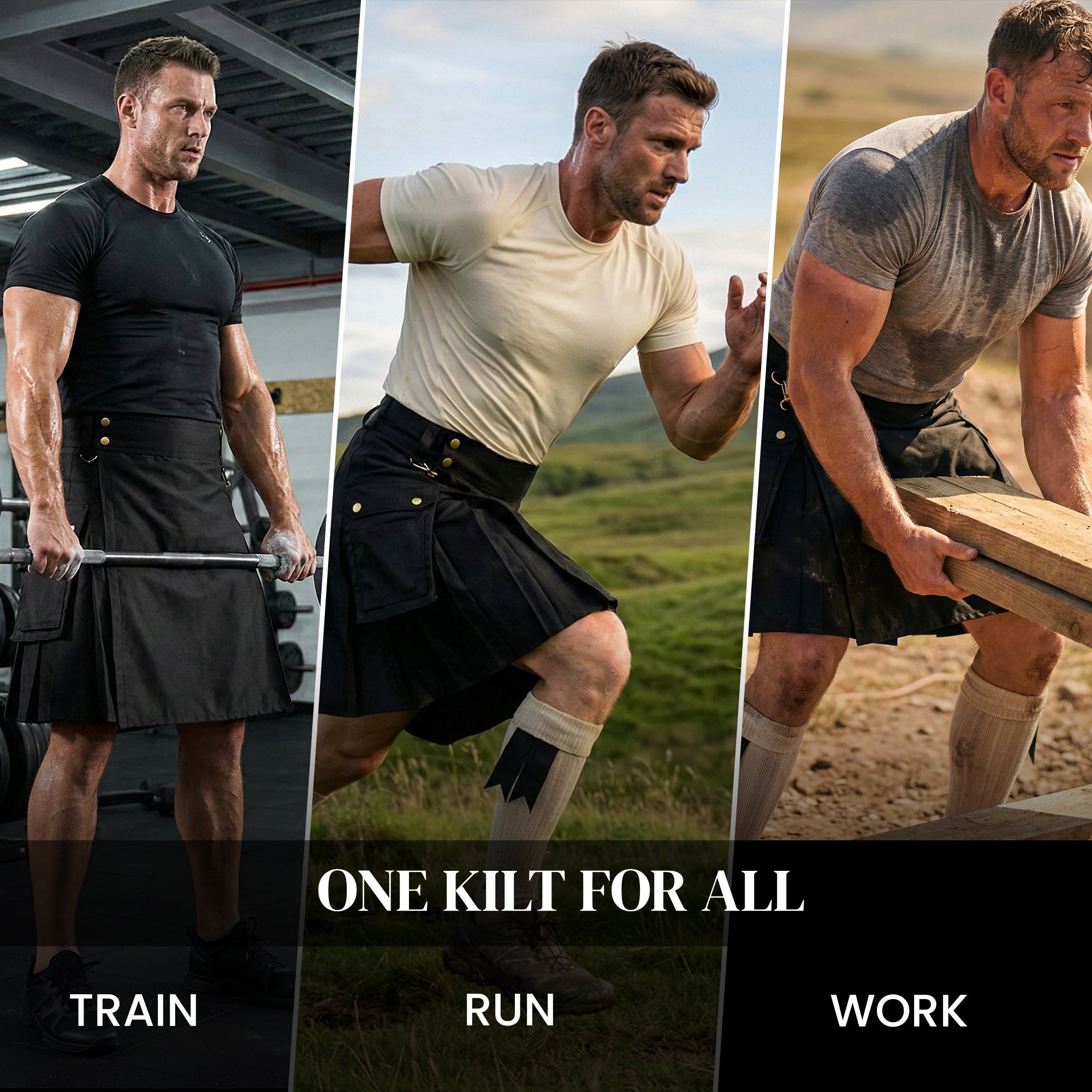 Upgrade your wardrobe with thePhantom Modern Black Utility Kilt, a perfect fusion of Scottish heritage, rugged functionality, and modern style. Designed for outdoor activities, workouts, festivals, and casual fashion, this men's utility kilt offers superior comfort, durability, and versatility.