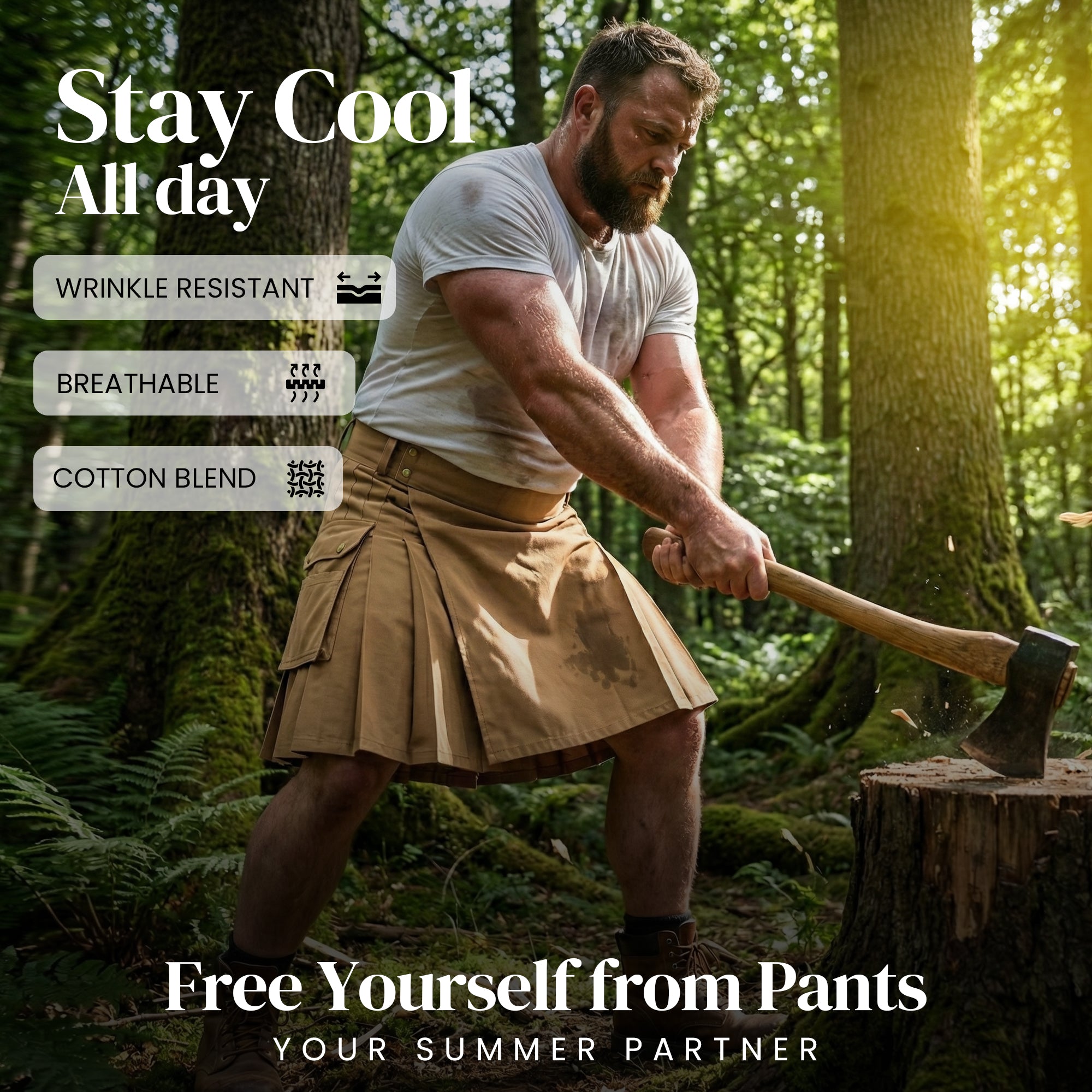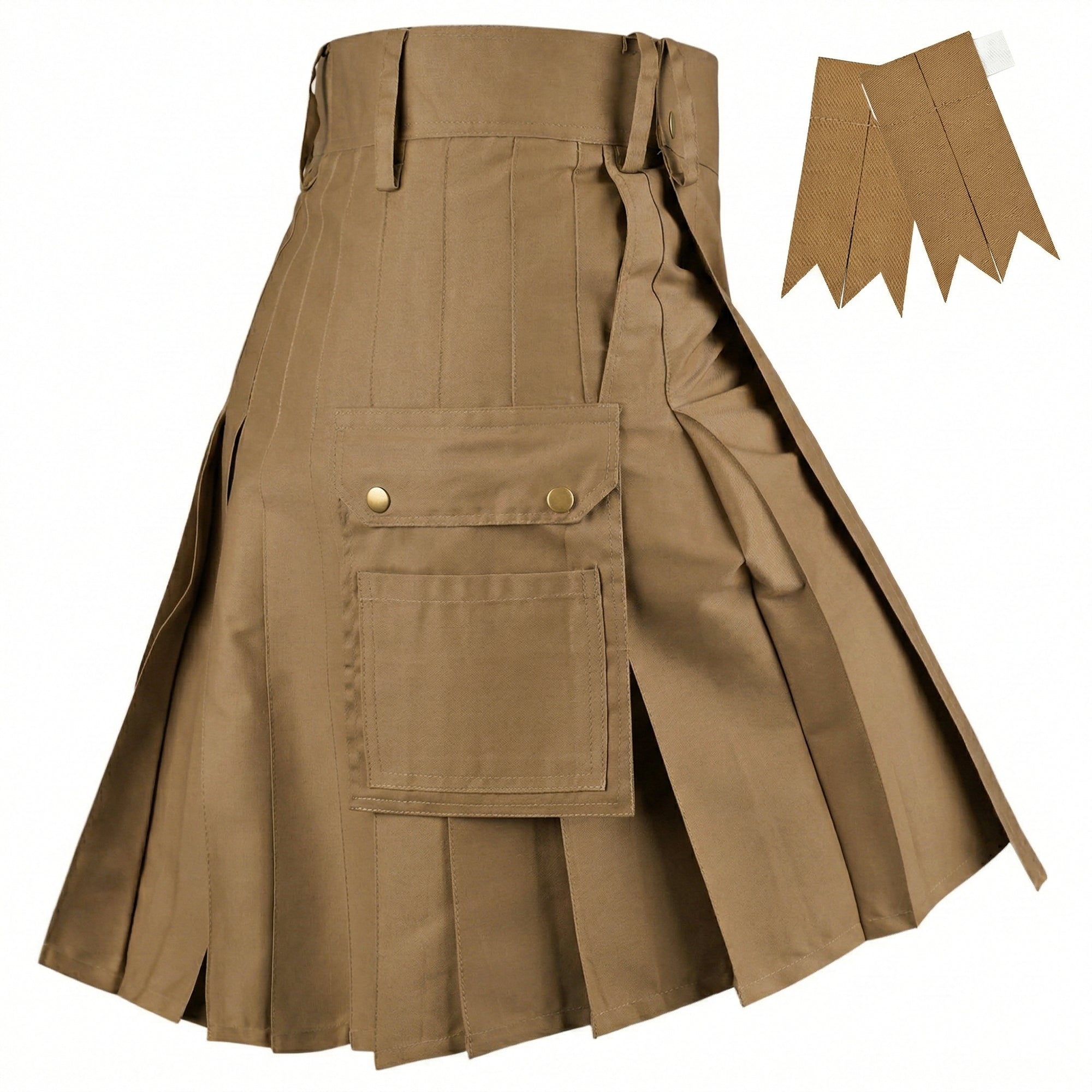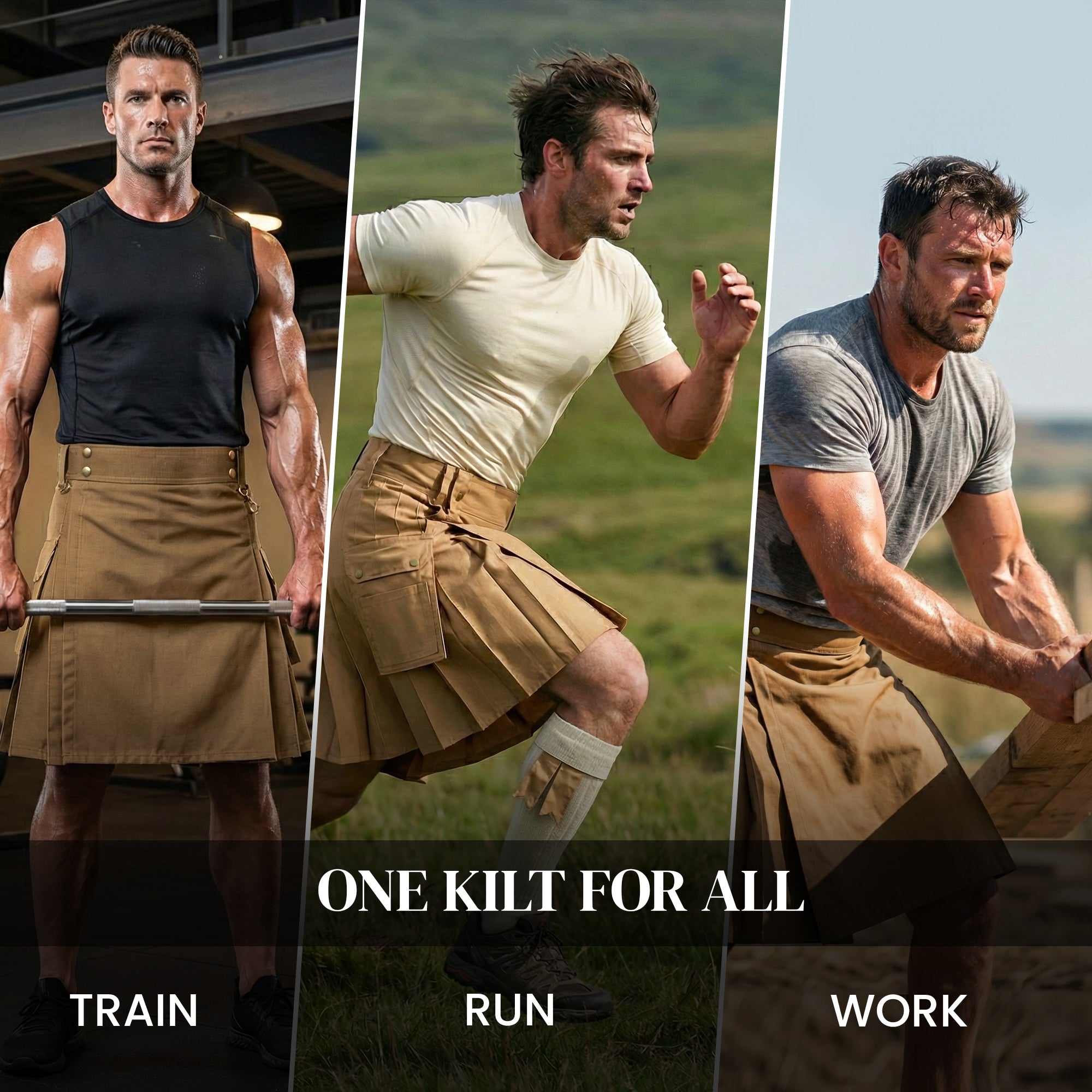 Upgrade your wardrobe with the Phantom Modern Khaki Utility Kilt, a perfect fusion of Scottish heritage, rugged functionality, and modern style. Designed for outdoor activities, workouts, festivals, and casual fashion, this men's utility kilt offers superior comfort, durability, and versatility.