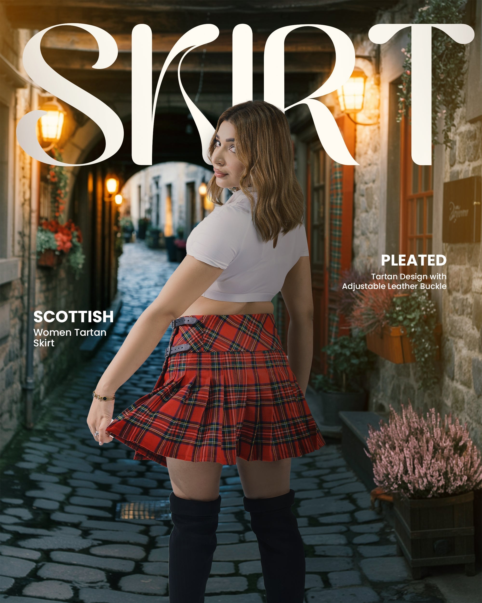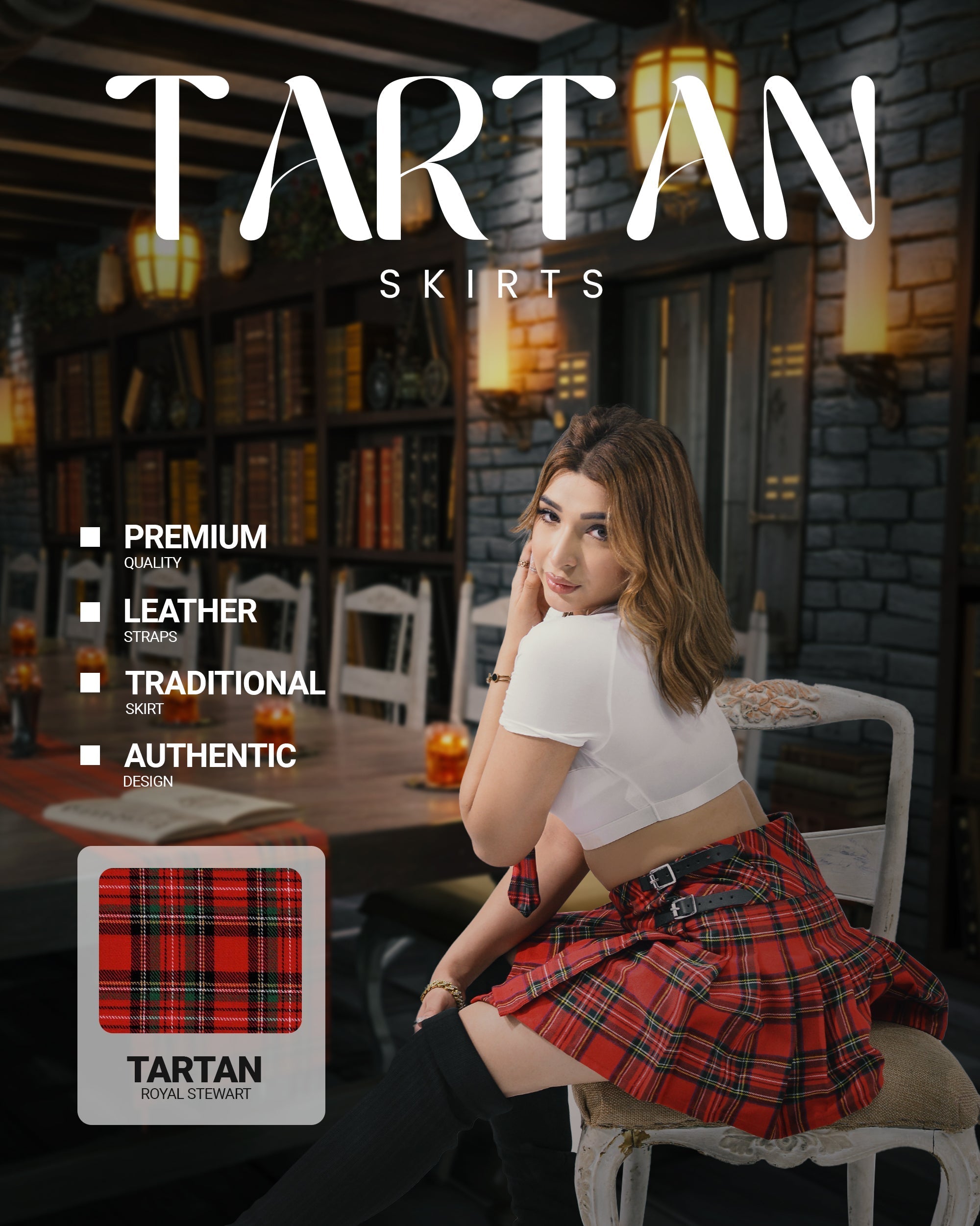 Introducing the Highland Women's Tartan Billie Skirt, a perfect fusion of traditional Scottish charm and modern style. Crafted from high-quality Polyviscose (P.V.) fabric, this skirt offers the ideal balance of durability, comfort, and breathability, making it perfect for all-day wear. Featuring the classicRoyal Stewart Plaid Tartan pattern, this skirt adds a sophisticated touch to any occasion, effortlessly combining elegance and functionality.